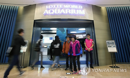 | △ 다시 문을 연 롯데월드몰 아쿠아리움 (서울=연합뉴스) 임헌정 기자 = 12일 재개장한 서울 송파구 롯데월드몰 아쿠아리움에서 시민들이 매표소로 입장하고 있다. |