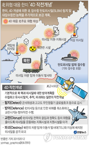 한미는 4D 작전개념을 작전계획 문서로 만들 때 '해상의 이동식 발사대'나 마찬가지인 SLBM 탑재 잠수함을 어떤 수단으로 탐지하고 파괴할지, 양국 군이 어떻게 임무를 분담할지 등을 담을 것으로 전해졌다.
