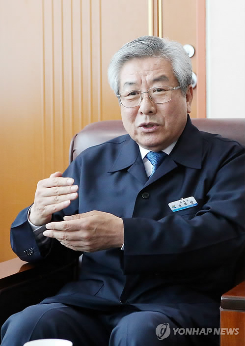 | △ 검찰 기소된 후 기자간담회 연 김복만 울산교육감 (울산=연합뉴스) 김근주 기자 = 김복만 울산시교육감이 12일 울산시교육청에서 검찰 기소 후 입장을 밝히는 기자간담회를 열었다. 김 교육감은 "법에 저촉되는 일을 하지 않았다"고 밝혔다. 2015.5.12 canto@yna.co.kr |