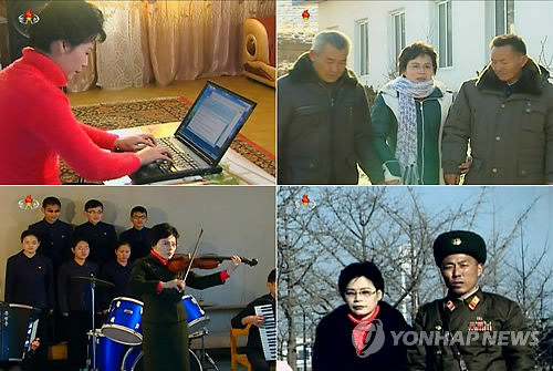 | △ 조선중앙TV가 지난 1월 '나는 심장으로 행복을 본다'라는 제목의 프로그램에서 시각장애인 여성 리춘향(37)씨의 사연을 소개하는 모습이다. 2015.5.13.<<연합뉴스DB>> |