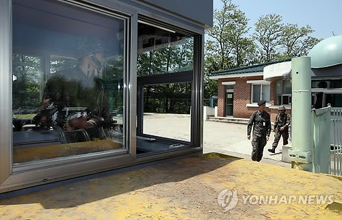 | △ 분주한 위병소 (서울=연합뉴스) 김주성 기자 = 13일 총기 사고가 발생한 서울 내곡동 예비군훈련장 위병소에 군인들이 분주하게 움직이고 있다. |