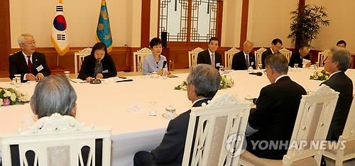 (도쿄=연합뉴스) 이세원 특파원 = 박근혜 대통령이 13일 일본 경제인을 만난 자리에서 한일 정상회담에 관해 긍정적인 태도를 보였다고 마이니치(每日)신문이 보도했다.