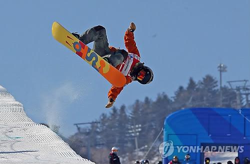 | △ 스노보드 경기 장면(연합뉴스 DB) 2015년 2월 27일 강원 횡성군 둔내면 웰리힐리파크 경기장에서 열린 제96회 전국동계체육대회 스노보드 하프파이프 경기에서 남자 고등부에 출전한 권이준(판곡고)이 기술을 선보이고 있다. |