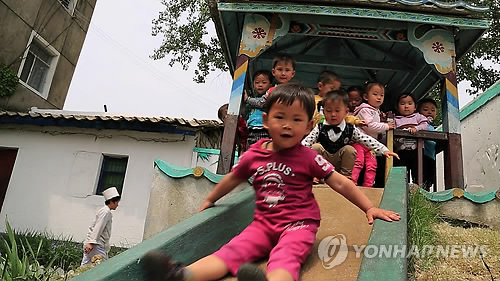 | △ 세계식량계획(WFP)의 지원을 받는 북한 평안남도 평성시의 한 탁아소에서 어린이들이 놀고 있다. WFP는 북한에서 모자(母子) 영양지원 사업을 펴고 있으며 어서린 커즌 사무총장은 지난해 5월 북한을 방문했다. 2015.5.14. << WFP/Marco Frattini 제공 >> |