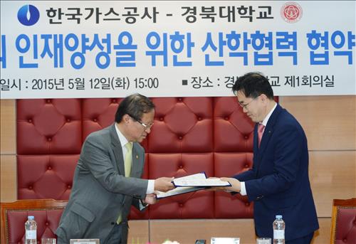 | △ 한국가스공사가 12일 경북대학교와 에너지 인재 양성을 위해 상호 협력하기 위한 협약을 맺었다. |