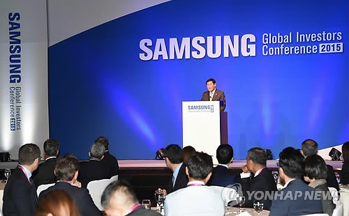 | △ 최경환 부총리, '2015 글로벌 투자자 콘퍼런스' 축사 (서울=연합뉴스) 최경환 부총리 겸 기획재정부 장관이 14일 서울 중구 신라호텔에서 삼성증권이 개최한 '2015 글로벌 투자자 콘퍼런스'에 참석, 축사하고 있다. 2015.5.14 << 기획재정부 제공 >> photo@yna.co.kr |