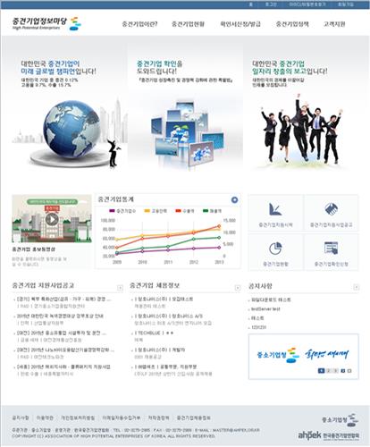 이 사이트를 통해 중견기업들은 지방자치단체와 공공기관 등의 지원사업 정보를 얻을 수 있고 정책 참여를 위한 중견기업 확인서를 온라인으로 발급받을 수 있다.