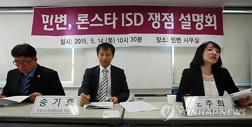 (서울=연합뉴스) 임미나 기자 = 민주사회를 위한 변호사 모임(민변)은 14일 론스타가 한국 정부를 상대로 낸 5조원대 투자자-국가소송(ISD)의 문제점을 지적하며 정부의 공세적인 대응을 주문했다.