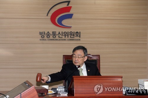 | △ 방통위 전체회의 (서울=연합뉴스) 최성준 방송통신위원장이 24일 오전 정부과천청사 방송통신위원회 회의실에서 열린 전체회의에 참석해 회의를 주재하고 있다. 2015.4.24 << 방송통신위원회 제공 >> photo@yna.co.kr |
