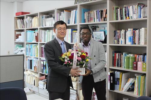 15일 스승의 날을 맞아 한양대 대학원 경영학과 박사과정인 졸리오 메르젤(29)씨는 '이벤트'를 위해 꽃다발과 직접 쓴 편지를 들고 지도교수인 박병진 교수의 연구실을 찾았다.