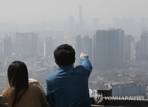 (서울=연합뉴스) 채새롬 기자 = 금요일인 15일 옅은 황사와 국내외 미세먼지의 영향으로 수도권과 강원 영서, 충청권에서 미세먼지가 '나쁨' 수준을 보이고 있다.