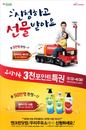 (서울=연합뉴스) 김연숙 기자 = SK에너지는 5월 '가정의 달'을 맞아 OK캐시백 3천 포인트(3천원 상당)로 2만원 상당의 선물을 받을 수 있는 이벤트 '3천 포인트의 특권'을 실시한다고 15일 밝혔다.