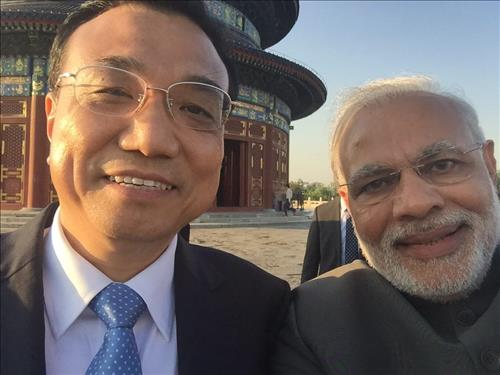 외신들에 따르면 모디 총리는 이날 중국 수도 베이징(北京)의 유적인 톈탄(天壇) 앞에서 리 총리과 함께 셀카 촬영을 한 뒤 자신의 트위터와 방중 직전 개설한 웨이보(微博, 중국판 트위터) 계정에 이 사진을 올렸다.