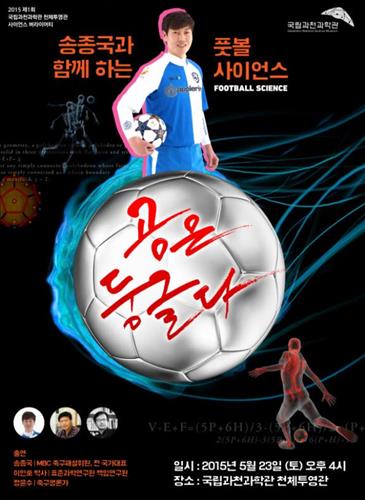 (서울=연합뉴스) 이주영 기자 = 국립과학천과학관(관장 김선빈)은 오는 23일 오후 4시 과학관 내 천체투영관에서 송종국 전 축구 국가대표 선수가 출연하는 과학토크콘서트 '풋볼 사이언스, 공은 둥글다'를 개최한다고 17일 밝혔다.