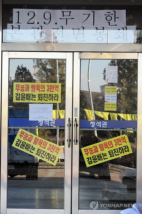 (청주=연합뉴스) 전창해 기자 = 청주대 교수회 등이 대학 본관 점거를 풀지 않으면 하루 300만씩 이행 강제금을 부과한다는 법원 판결이 나왔다.