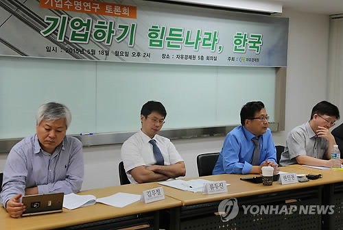 자유경제원이 18일 '기업하기 힘든 나라, 한국'이라는 주제로 개최한 토론회에서 임병인 충북대 교수(경제학)는 이런 내용의 '기업수명 연구' 결과를 발표했다.