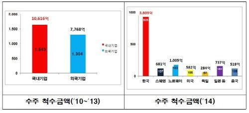국내 업체들이 관련 기술을 적극적으로 개발한 결과 2010∼2013년 주로 신규 건조하는 선박 1천643척에 1조616억원 상당의 평형수 처리설비 계약을 수주했고 2014년에는 926척, 3천809억원 상당을 수주했다.