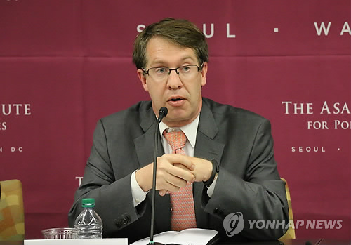 | △ 미 전문가들 "일본, 독도영유권 주장 접고 위안부에 배상하라" (워싱턴=연합뉴스) 노효동 특파원 = 한반도 전문가인 스콧 스나이더 미국외교협회(CFR) 선임연구원이 18일(현지시간) 미국 워싱턴D.C.에서 열린 세미나에서 일본이 독도 영유권 주장을 포기하고 일본군 위안부 피해자들에게 금전적 배상을 하면 한국은 일본의 최종적 제안으로 수용해 미래지향적 관계로 나아가야 한다는 내용의 '그랜드 바겐'을 제안하고 있다. |