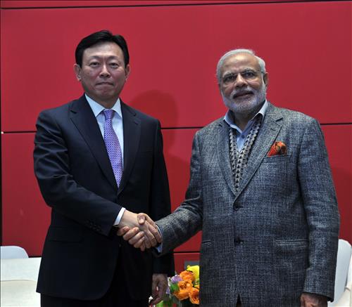 (서울=연합뉴스) 신호경 기자 = 신동빈 롯데그룹 회장이 19일 오전 서울 중구 힐튼호텔에서 국빈 방한 중인 나렌드라 모디 인도 총리를 만나 롯데의 현지 사업 현황과 투자 확대 방안 등을 논의했다.