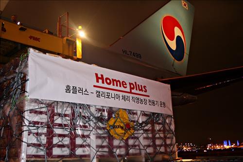 홈플러스는 18일 대한항공 전세기를 통해 미국 캘리포니아산 체리 120t을 수입했다고 20일 밝혔다. 홈플러스는 7월 중순까지 추가로 다섯 차례 정도 더 전세기를 띄워 600여t의 미국산 체리를 추가로 공수할 예정이다.