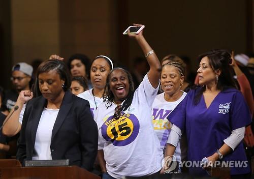 (서울=연합뉴스) 한미희 기자 = 미국에서 두 번째로 큰 도시인 로스앤젤레스가 법정 최저 임금을 시간당 15달러로 인상키로 했다.