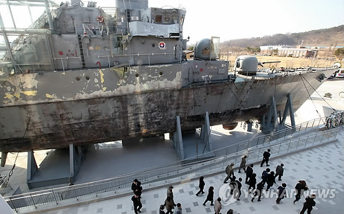 | △ 천안함 피격 사건 5주년인 지난 3월 26일 경기도 평택 해군 제2함대사령부를 찾은 천안함 46용사의 가족들이 피격 천안함을 살펴보고 있다. (연합뉴스 자료사진) |