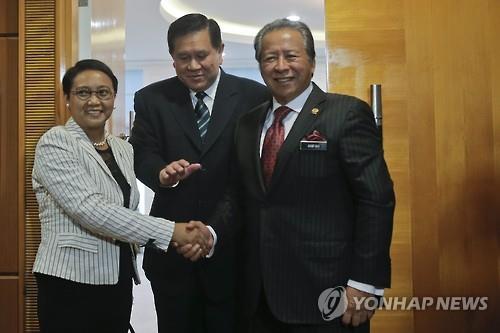 | △ 인도네시아, 말레이시아, 태국 외무장관의 난민대책 회동(EPA=연합뉴스) |