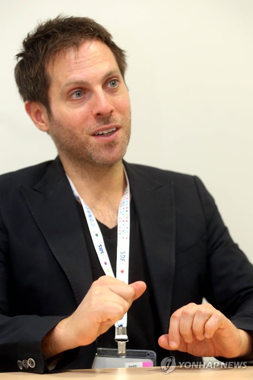 | △ 뉴욕타임스의 변화 말하는 아담 엘릭 (서울=연합뉴스) 김수진 기자 = 뉴욕타임스 혁신보고소 TF팀의 비디오 저널리스트로 활약했던 아담 엘릭이 20일 서울 동대문디자인플라자에서 연합뉴스와 인터뷰를 하고 있다. 2015.5.20 ksujin@yna.co.kr |