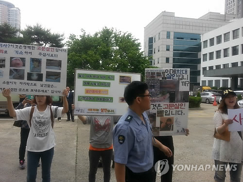| △ 아동학대 방지 온라인 모임인 '하늘소풍' 회원 10여명이 대구지법 앞에서 의붓딸을 숨지게 한 일명 '칠곡계모 사건'의 피고인 임씨 부부에 대한 엄한 처벌을 촉구했다.(연합뉴스 자료사진) |