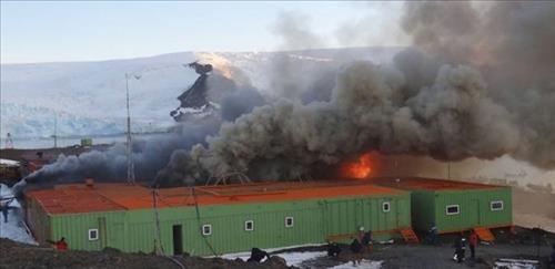 | △ 지난 2012년 2월 화재가 일어난 브라질 남극 과학기지. 브라질 에스타두 지 상파울루에 실린 화재 발생 당시 사진. |