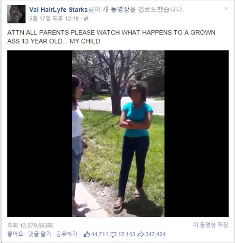 지난 17일 올라온 이 영상을 페이스북 사용자 1천200만명 이상이 시청했다. 수 천명이 시청 소감을 달고 딸을 호되게 혼낸 엄마를 대부분 칭찬했다.