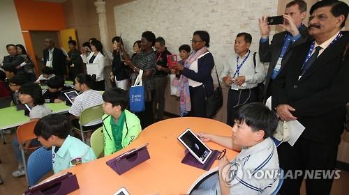 한국 스마트 수업 참관 OECD 교육관계자들 "Wonderful"