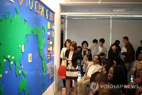 특히 중앙 현관에 레고 블록으로 만들어진 세계지도 작품이 참석자들의 관심을 끌었다.