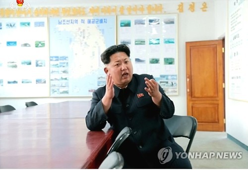 | △ 북한 김정은, 함경도 군부대 시찰...남한 해공군기지 배치도 공개 (서울=연합뉴스) 김정은 북한 국방위원회 제1위원장이 함경북도 군부대를 시찰했다. 조선중앙TV는 24일 "김정은 동지께서 조선인민군 제264대연합부대 지휘부를 시찰하시었다"고 보도했다. 이날 시찰에는 황병서 군 총정치국장, 장창화 군 소장이 수행했다. 그러나 숙청된 현영철 인민무력부장은 이날 군부대 시찰에 모습을 드러내지 않았다. 지휘부 사무실 벽면에는 '남조선지역 적 해공군배치' 도면이 걸려 있어 눈길을 끌었다. 2015.5.24 nkphoto@yna.co.kr |