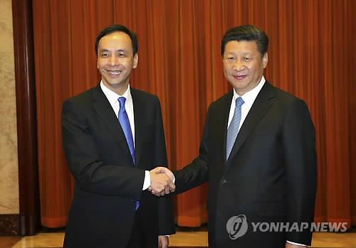 | △ 지난 4일 베이징에서 성사된 시진핑(習近平) 중국 국가주석과 대만 주리룬(朱立倫) 국민당 주석의 '국공(國共) 수뇌회담'.(EPA=연합뉴스 자료사진) |