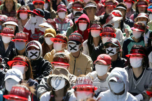 | △ 2004년 10월 집창촌인 부산 서구 속칭 `완월동'에서 업주와 여종업원들이 성매매특별법 시행에 따른 경찰의 단속에 항의하며 생존권 보장을 촉구하는 집회를 벌이고 있다 << 연합뉴스 자료사진 >> |
