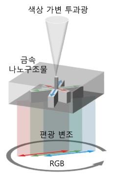 연구팀은 이러한 색상 고정형 컬러 필터의 한계를 극복하기 위해 공진기(cavity) 구조와 나노 구멍 구조가 결합한 금속 나노구조물을 제안함으로써 한 개의 컬러 필터가 여러 가지 색상을 표현해낼 수 있다는 사실을 최초로 보여줬다.