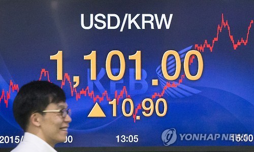 26일 서울 외환시장에서 원·달러 환율 종가는 달러당 1,101.0원으로 전 거래일 종가보다 10.9원 올랐다.