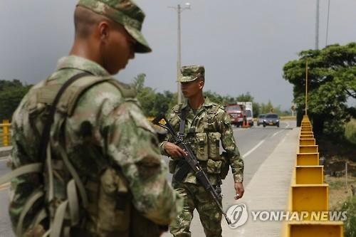 | △ FARC 반군을 경계하고 있는 콜롬비아 정부군(EPA=연합뉴스) |