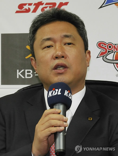 | △ 안양 KGC인삼공사 신임 사령탑 전창진 감독 (서울=연합뉴스) 프로농구 안양 KGC인삼공사 사령탑에 선임된 전창진(52) 전 부산 케이티 감독. 전창진 감독은 2009-2010시즌부터 2014-2015시즌까지 케이티를 이끌면서 정규리그 우승 1회, 4강 플레이오프 진출 4회 등의 성적을 낸 지도자다. 지난 2012년 3월 서울 논현동 KBL센에서 열린 2011-2012 KB 국민카드 프로농구 플레이오프 미디어데이 행사에서 전창진 부산 KT 감독이 취재진의 질문에 답하고 있다. 2015.4.15 << 연합뉴스 DB >> photo@yna.co.kr |