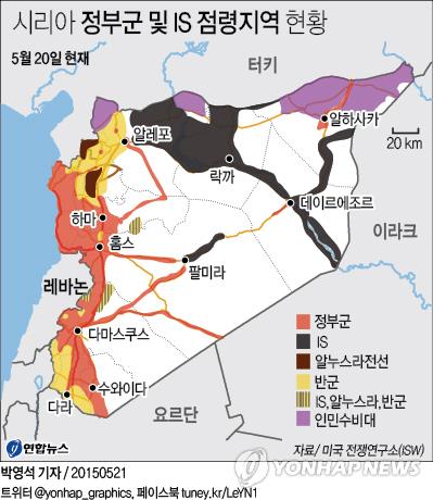 (이스탄불=연합뉴스) 김준억 특파원 = 시리아 고대유적 도시 팔미라를 점령한 수니파 무장조직 '이슬람국가'(IS)가 다음 목표로 '혁명의 수도'로 불리는 중부 도시 홈스를 택할 것이란 전망이 나왔다.