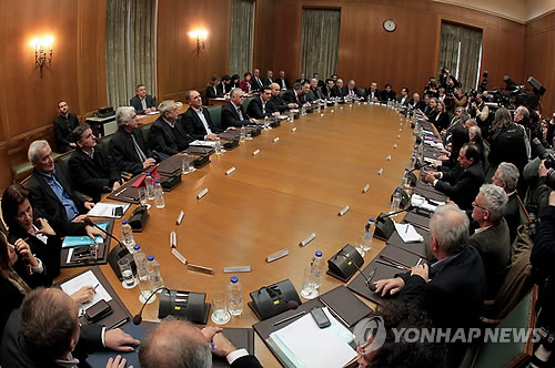 | △ 올해 1월27일 열린 그리스 급진 좌파 새 정부, 첫 내각회의.(EPA=연합뉴스) |