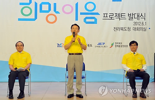(서울=연합뉴스) 이봉준 기자 = 산업통상자원부는 27일 부산 경성대학교에서 이관섭 제1차관, 김규옥 부산시경제부시장, 송수건 경성대 총장, 정재훈 한국산업기술진흥원장, 대학생 등 300여명이 참석한 가운데 '2015 지역 대학생-우수기업 희망 이음' 발대식을 가졌다.