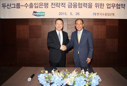 (서울=연합뉴스) 고웅석 기자 = 두산그룹(회장 박용만)은 한국수출입은행(은행장 이덕훈)과 '금융협력을 위한 업무협약'을 체결했다고 27일 밝혔다.
