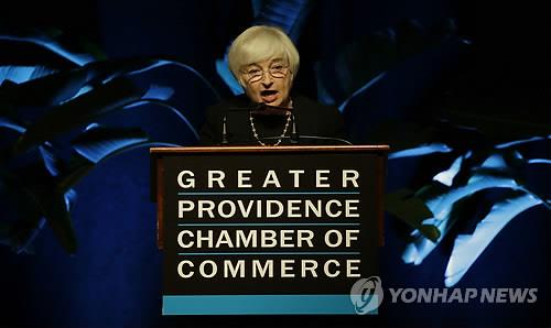 | △ (프로비던스 AP=연합뉴스) 재닛 옐런 미국 연방준비제도(연준) 의장이 22일(현지시간) 미 로드아일랜드주 프로비던스 지역 상공회의소 연설에서 "올해 안 어느 시점에는 연방기금금리 목표치를 높이기 위한 초기 조치에 나서고 통화정책의 정상화 절차를 시작하는 게 적절하다"고 밝히고 있다. 이날 옐런의 발언으로 올 9월 연방공개시장위원회(FOMC) 정례회의 때부터 기준금리 인상에 착수할 것이라는 금융시장 전문가들의 예상에 무게가 실릴 것으로 보인다. marshal@yna.co.k (끝) |