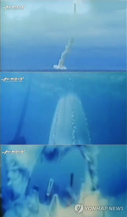 대남선전용 웹사이트 우리민족끼리가 이날 게재한 '시사 카메라 초점:깨진 쪽박을 쓰고 날벼락을 막기'라는 제목의 2분4초 분량의 동영상에는 물속 잠수함에서 거대한 탄도탄이 발사돼 수중으로 솟구치는 장면이 나온다.