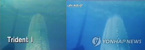 북한이 공개한 물 속의 잠수함에서 탄도탄이 발사되는 장면 10여초 가량은 화면 구도 배경, 탄도탄의 모습 등 모든 점이 '트라이던트 1'이 바닷속에서 솟구치는 모습과 똑같다.