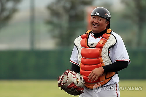 (대전=연합뉴스) 김지헌 기자 = 한화 이글스 안방마님 조인성(40)이 만루만 되면 작아지는 후배들에게 몸소 모범을 보였다.