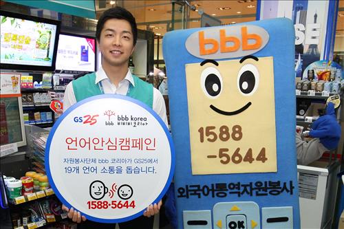 국내 거주하는 외국인이나 외국인 관광객이 GS25를 방문할 경우 해당 점포의 경영주나 근무자는 bbb코리아(☎1588-5644)로 전화해 ARS 음성 안내에 따라 통역이 필요한 언어를 선택하면 해당 언어 통역 봉사자와 연결할 수 있다.