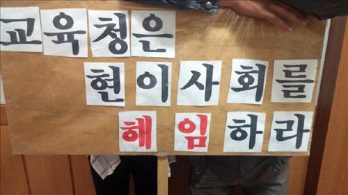 학부모 60여명은 27일 밤 학교를 찾아와 이사회 회의장 앞에서 피켓을 들고 농성을 벌이다가 자정을 넘겨 돌아갔다.